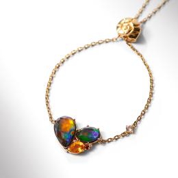 KORITE RADIANT Sterling Silver 18K Gold Plated Ammolite, Garnet Necklace