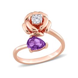 Julianna B 14K White Gold 0.20 CTW Diamond, Pink Topaz & Amethyst-Africa Ring
