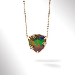 KORITE STARLIGHT Sterling Silver 18K Gold Plated Ammolite & White Topaz Necklace