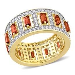 Julianna B Sterling Silver Yellow Plated Garnet and White Topaz Eternity Ring