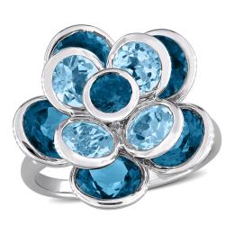 JULIANNA B Sterling Silver London Blue & Sky Blue Topaz Flower Ring