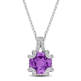 Julianna B Sterling Silver Amethyst and White Topaz 18" Drop Pendant with Chain