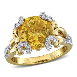 Julianna B Sterling Silver Yellow Plated Citrine and White Topaz Ring