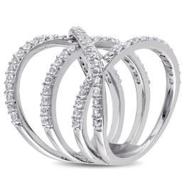 Julianna B Sterling Silver Blue and White Topaz Halo Split Shank Ring