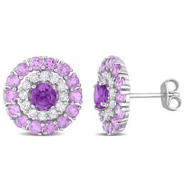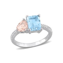 Julianna B Sterling Silver 0.10CTW Diamond, Blue Topaz & Morganite Ring