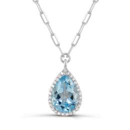 Sterling Silver Sky Blue Topaz and White Topaz Paperclip Link Necklace