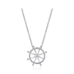 Sterling Silver Cubic Zirconia Ship Wheel 19" Pendant