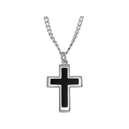 Sterling Silver Onyx Cross with 24" Stainless Steel Chain