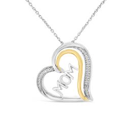 Sterling Silver & 10K Yellow Gold Diamond Mom Heart Pendant