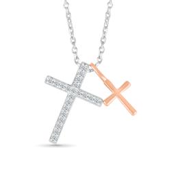 Sterling Silver and Rose Gold Plated Diamond Mother's Love Turtle Pendant