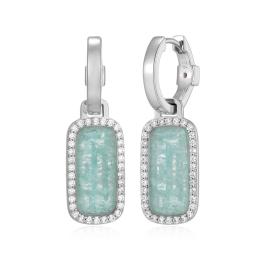 ELLE "Allure" Rhodium Plated Amazonite & Cubic Zirconia Halo Hoop Earrings