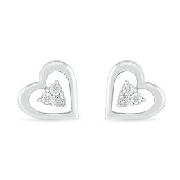 Sterling Silver 0.02CTW Diamond Heart Earrings