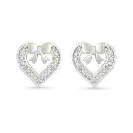 Diamond Heart & Bow Stud Earrings in Sterling Silver