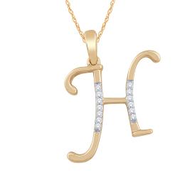 10K Yellow Gold Diamond Initial " H" Pendant