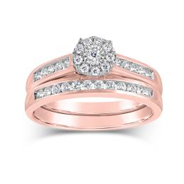 10K Rose Gold Aquamarine & Diamond Bridal Set