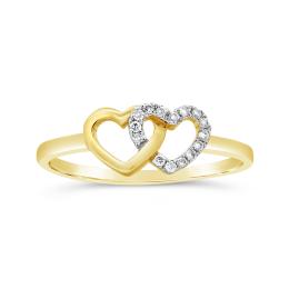 10K Yellow Gold Diamond Double Heart Promise Ring