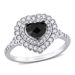 Julianna B 14K White Gold 1.24CTW Black Heart Diamond Halo Ring