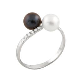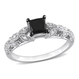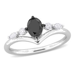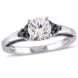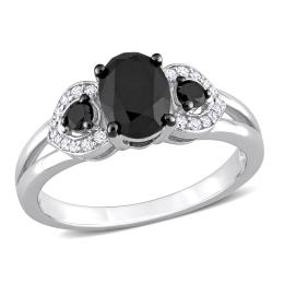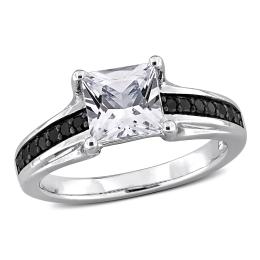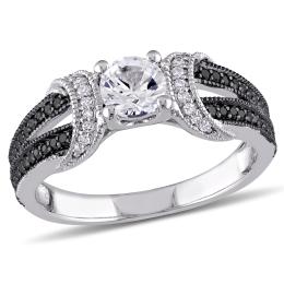 Julianna B Sterling Silver Created White Sapphire & Black Diamond Ring