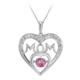 Sterling Silver Created Pink & Created White Sapphire Mom Dancing Pendant