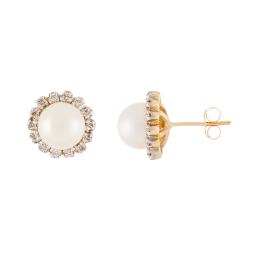 Sterling Silver 8-8.5mm White Pearl Cubic Zirconia Choker with Extender