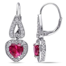 Julianna B Sterling Silver Created Ruby & White Sapphire Heart Earrings