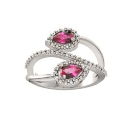 Sterling Silver Created Ruby & Diamond Ring