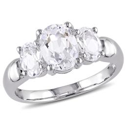 Julianna B Sterling Silver Oval Cut Created White Sapphire Three-Stone Ring