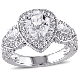 Julianna B Sterling Silver Created White Sapphire Teardrop Halo Vintage Ring