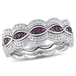 Julianna B Sterling Silver Created Ruby & Created White Sapphire Stackable Ring