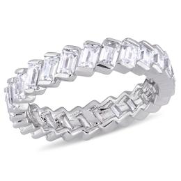 Julianna B Sterling Silver Baguette-Shaped Cubic Zirconia Angled Eternity Ring