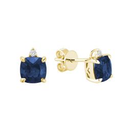 10K Yellow Gold Created Blue Sapphire & Diamond Earring
