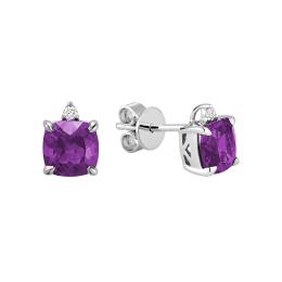 10K White Gold Amethyst & Diamond Earring