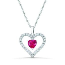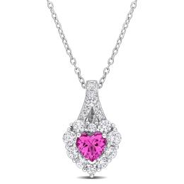 Julianna B Sterling Silver Created Pink and Created White Sapphire Heart Pendant