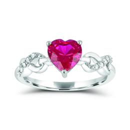 Sterling Silver Created Ruby & Created White Sapphire Infinity Heart Ring