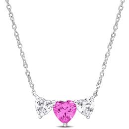 Julianna B Sterling Silver Created Pink Created White Sapphire Heart Necklace