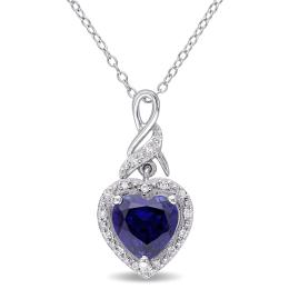 Julianna B Sterling Silver Created Sapphire & Diamond Heart 18" Pendant