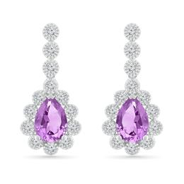 Sterling Silver Created Pink Sapphire, Amethyst, Diamond Butterfly Pendant