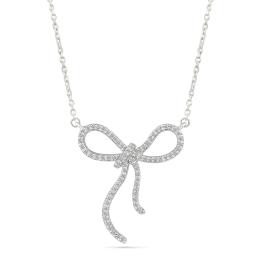 0.12CTW Diamond Bow Necklace in 10K White Gold