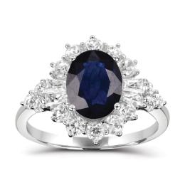 Sterling Silver Blue Sapphire & White Zircon Halo Ring