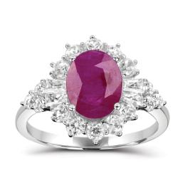 Sterling Silver Ruby & White Zircon Halo Ring