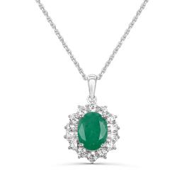 Sterling Silver Emerald & White Zircon Halo 19" Pendant