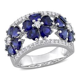 Julianna B Sterling Silver Created Blue Sapphire & Created White Sapphire Ring