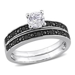 Julianna B Sterling Silver Created White Sapphire & Black Diamond Bridal Set