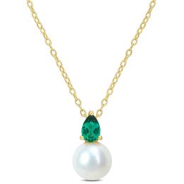 Julianna B Yellow Plated Sterling Silver Created Emerald & 8.5-9MM Pearl Pendant