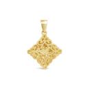 Delicately crafted in yellow gold, this pendant features an intricate openwork design that exudes timeless elegance. The fine detailing and graceful silhouette make it a versatile accessory, perfect for both everyday wear and special occasions.