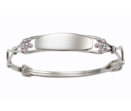 Crafted from gleaming sterling silver, this adjustable bangle is designed to fit a child's wrist comfortably. Adorned with pink flowers, it exudes warmth, grace, and a playful spirit, creating the perfect accessory for a child's wrist. The delightful flower accents add depth and a touch of whimsy, making this bangle more than just jewellery; it's a symbol of enduring charm and the cherished moments of youth.