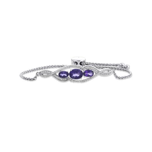 Give a complete look to your outfit with this beautiful amethyst and created white sapphire bolo bracelet crafted in sterling silver. It is gently secured with an adjustable tassel to ensure the perfect fit.