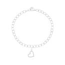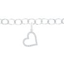 This sweet charm bracelet is crafted form sterling silver and starts your collection with a lovely little diamond set heart with 0.03ctw of glittering stones. The cable link bracelet is 7.5" in length but can be worn at any length with a secure lobster claw clasp.