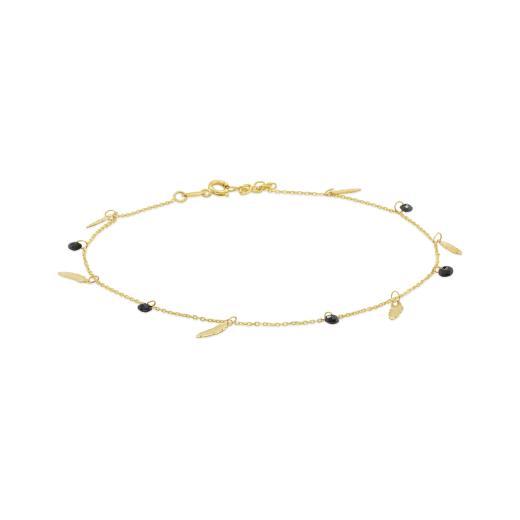 The focal point of this anklet is the exquisite leaf design adorned with black cubic zirconia accents. This captivating detail adds a touch of sophistication and intrigue to your overall look, making it a perfect choice for both everyday wear and special occasions.