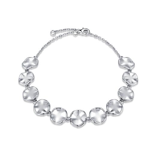 This bracelet features a textured circle design crafted from sterling silver, offering a modern and elegant look. The intricate texture adds depth and interest to the piece, making it a versatile accessory that can be worn alone or stacked with other bracelets for a chic, layered look